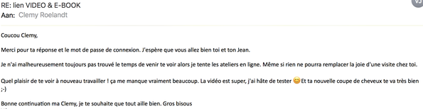 J'espère que tu vas bien ! Je t'imagine fort occupée à lancer tes cours en ligne, c'est un sacré boulot que tu as commencé là mais je pense très honnêtement que c'est encore une belle et pratique manière de déléguer ton savoir.